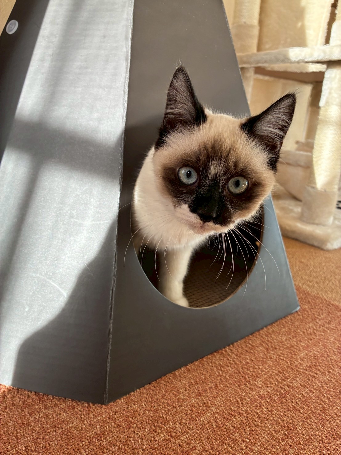 乗ったりするのが大好き - 保護時の風邪の影響で左目に白濁が残っています。